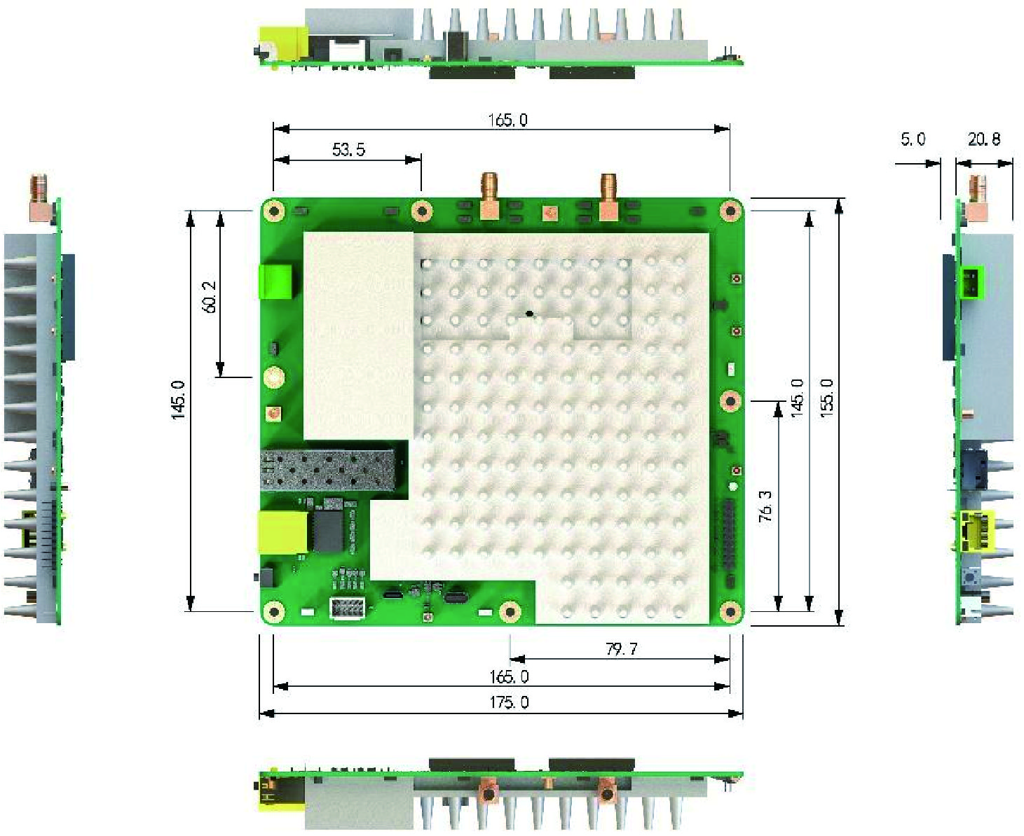 175mm*155mm*25.8mm(包含散熱片和射頻屏蔽罩) |
